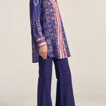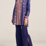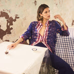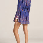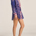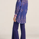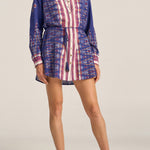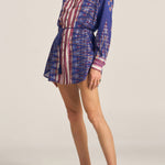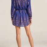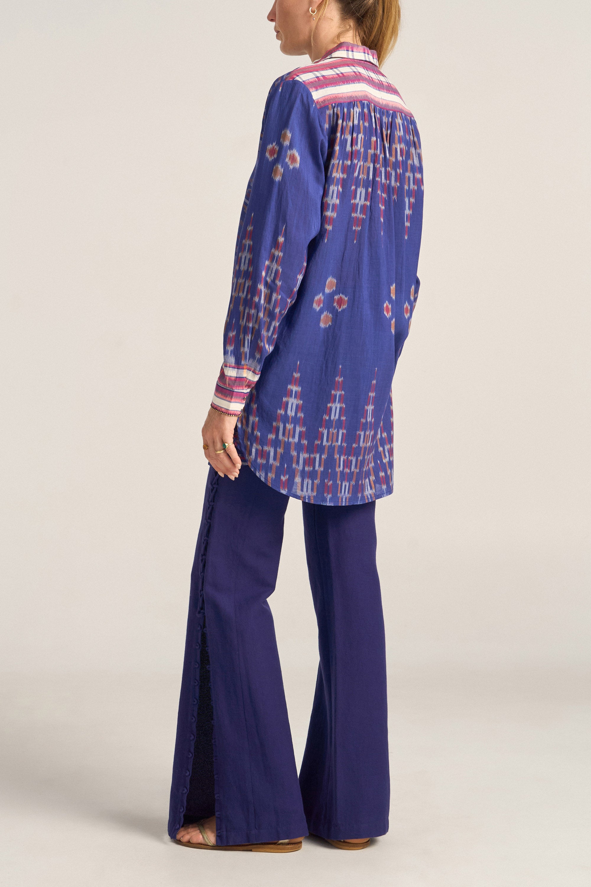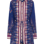 The Arion Shirt Dress blends classic tailoring with artisanal flair. Crafted from a rich cotton Ikat fabric with gold accents, the striped border runs down the centre, adding a unique look to this simple shape. Designed with long sleeves, a sharp collar, gold buttons and delicate beading at the cuffs, this mini dress is cinched at the waist with a rope tie finished with beaded tassels for a touch of handcrafted elegance. Effortlessly chic and thoughtfully detailed, the Arion Shirt Dress is a standout piece to wear on its own or layered as a relaxed tunic over pants.