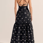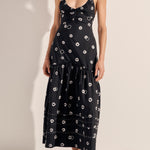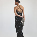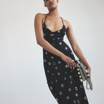 The Eucleia Dress is crafted in crisp cotton poplin and individually hand-dyed in a small regenerative farm in Bengaluru, India. To create this stunning pattern the artisans use an ancient dyeing technique based on tying the fabric before dyeing to resist the dye which create motifs through out the dye process. This style is adorned with delicate hand-beading detail adding another layer of stunning craftsmanship. This piece is a summer must-have to dress up or down. The straps are adjustable and can be worn straight or criss-crossed at the back. The perfect dress to shine on any occasion.