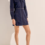 Oceanus Navy Boucle Stripe Mini Dress