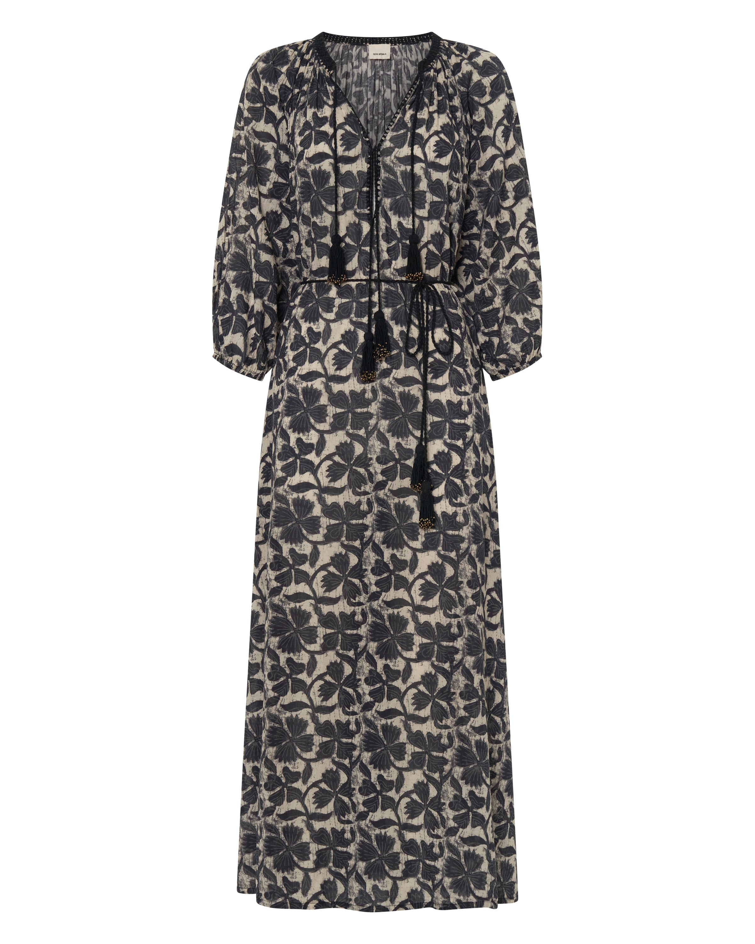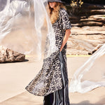 The Priam Caftan is an effortless style crafted in an organic printed cotton voile. This breezy summer caftan is maxi length and features 3/4 sleeves with elastic cuffs, a deep neckline, high slits and side pockets. This unique and striking caftan is completed with hand crochet neck and hand-beaded tassels. It's a must have! It comes with a separate rope tassel belt.