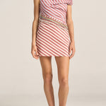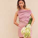 The Sirius Dress has a refined, flattering silhouette with a playful edge. Tailored to contour the body, it features soft draping creating an asymmetrical neckline. The off-the-shoulder design brings a twist to this otherwise tailored mini dress. Delicate beading drapes diagonally across the waist, adding handcrafted elegance, and the bicolour stripe combination brings another layer of subtlety. A discreet secret side zip ensures ease of wear. The Sirius Dress is a new season favourite, adding an artful energy to any wardrobe.