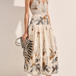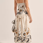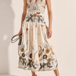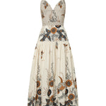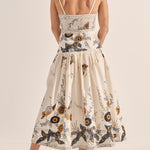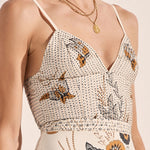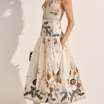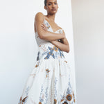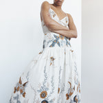 The Aphrodite Dress is new silhouette made from crisp cotton poplin adorned with our beautiful vintage inspired Cream Batik Print. Featuring thin straps, a romantic v-neckline, gorgeous hand-stitched bodice, a fitted hip yoke with a richly gathered skirt. This style has side pockets and fastens with side zipper. The perfect dress to shine on any occasion.