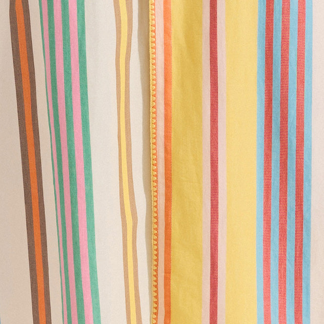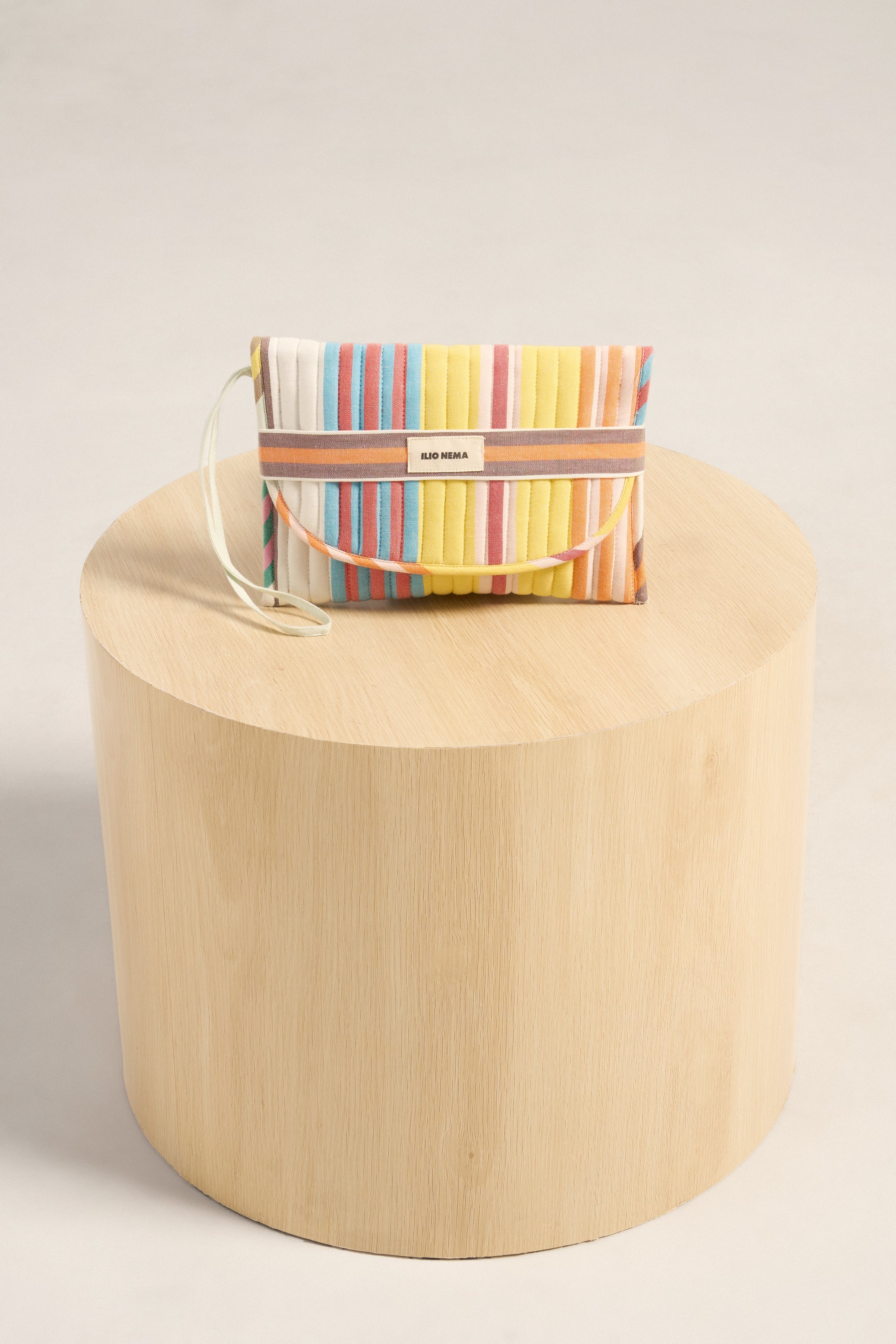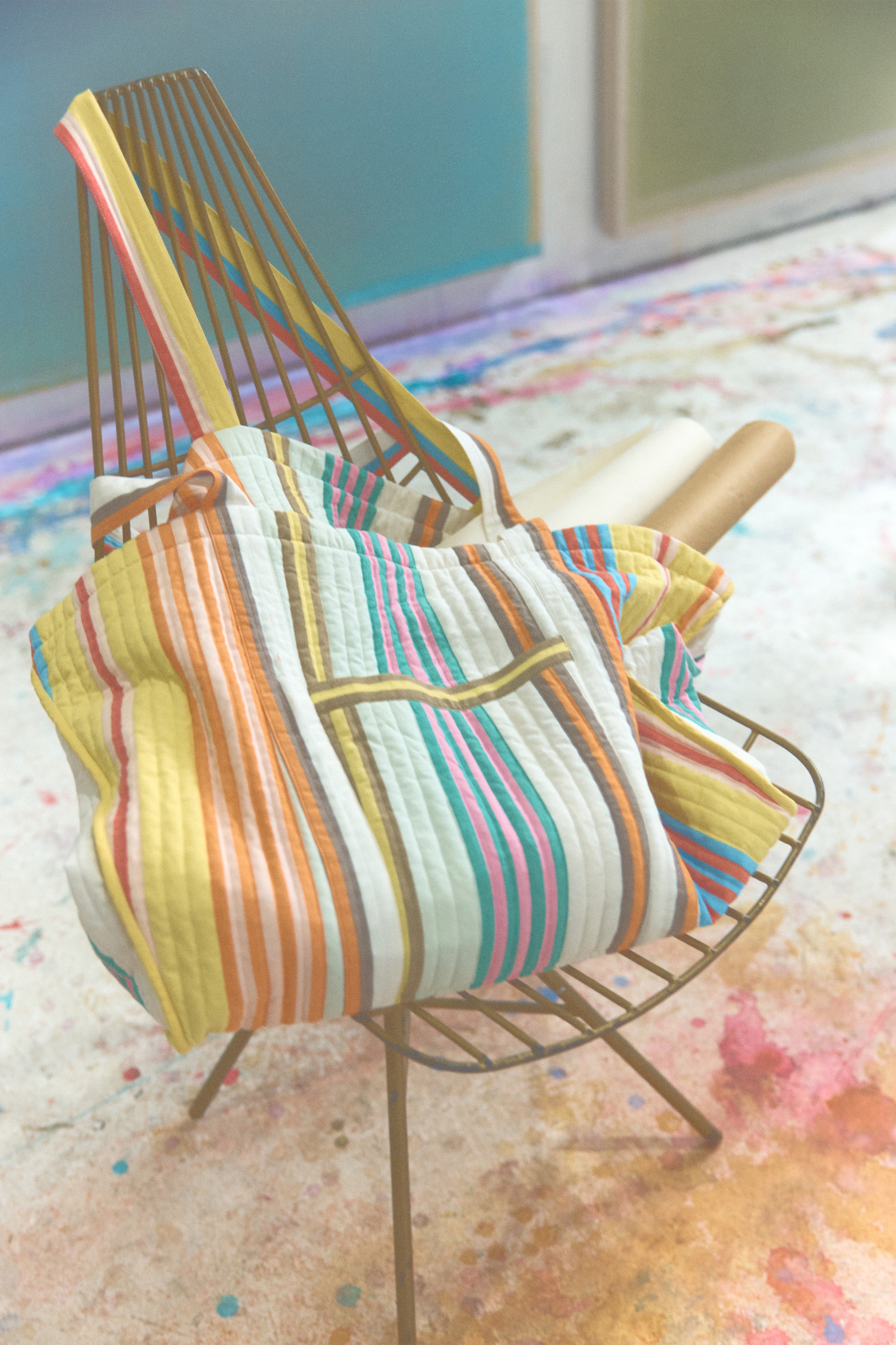The Hydra Tote and matching pouch is crafted from the new Heraklion Stripe fabric, featuring quilted stitching and a lightly padded design. The Hydra Tote features a top zip closure, an outside patch pocket for easy access, and an inside zipped pocket for valuables, it combines style and functionality. Colourful and playful, this oversized tote is the perfect beach bag or weekender travel companion and comes with a matching pouch.