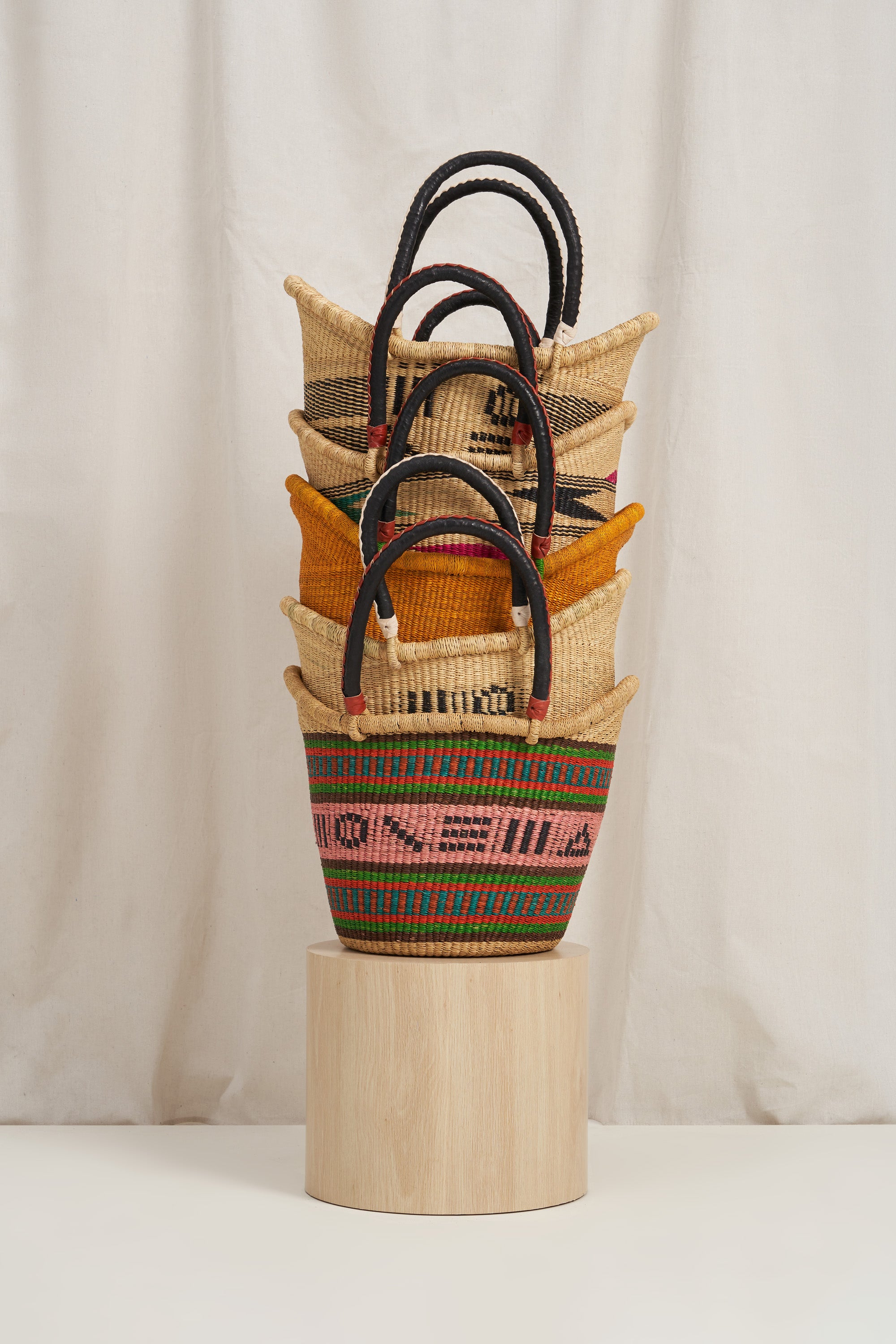 Made in collaboration with Baba Tree. The Baba Tree Basket Co has been preserving the culture of baskets and the Gurunsi community in Bolgatanga for the last 15 years. It’s here that an exquisitely woven Baba Tree community of over 250 artisans practice a time-honoured weaving technique using elephant grass and their very own “rhythm and flow”. Each basket comes directly from the hands of the artisan weavers we collaborate with - energetic, colourful, purposeful. Each luscious curve is the handprint or signature of the weaver who has expertly handcrafted your basket, we celebrate the unique differences in each and every piece.