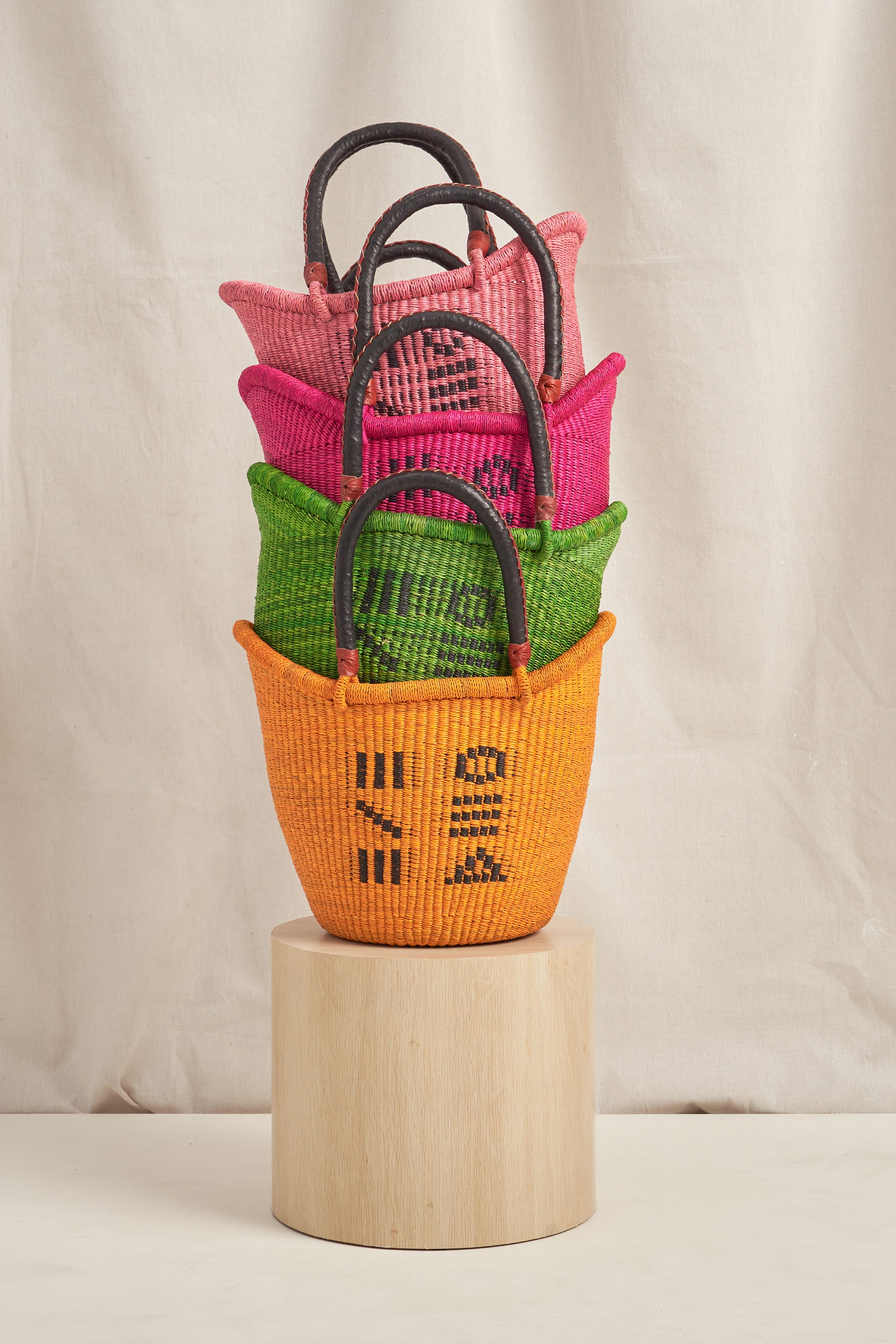 Made in collaboration with Baba Tree. The Baba Tree Basket Co has been preserving the culture of baskets and the Gurunsi community in Bolgatanga for the last 15 years. It’s here that an exquisitely woven Baba Tree community of over 250 artisans practice a time-honoured weaving technique using elephant grass and their very own “rhythm and flow”. Each basket comes directly from the hands of the artisan weavers we collaborate with - energetic, colourful, purposeful. Each luscious curve is the handprint or signature of the weaver who has expertly handcrafted your basket, we celebrate the unique differences in each and every piece.
