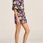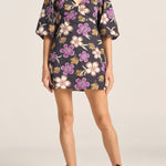 The Coeus Dress is a statement mini dress, crafted from a vibrant hibiscus printed poplin that blends deep purples and soft creams into a lush floral pattern. Featuring a flattering V-neckline, ruched fitted bodice, and softly puffed sleeves, this dress moves gracefully with you—perfect for both relaxed days and special occasions. A discreet back zip ensures ease of wear, while the lightweight, effortlessly chic design brings tropical beauty and effortless style to your wardrobe.