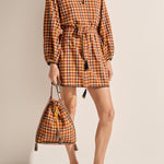 The Aurora Bag is lightly padded and features hand crochet edges and strap, handmade rope tie to cinch and multi-coloured tassels. It has an inside patch pocket for convenience. Colourful and playful, it's a fun accent for any outfit from beach to dinner.