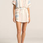 The Daphne Top is a relaxed yet polished staple, designed for effortless everyday wear. Cut in our breezy Byron Stripe, it features loose, short sleeves that are softly rolled and secured with a buttoned tab for a casual finish. A clean, collarless neckline and subtle gold buttons add a touch of understated elegance. Lightweight and versatile, the Daphne Top pairs perfectly with the Abas Skirt.