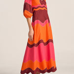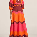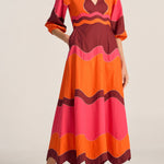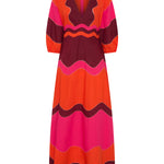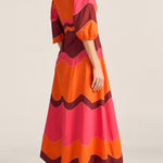 Dryope Red & Pink Wave Patchwork Poplin Dress