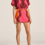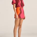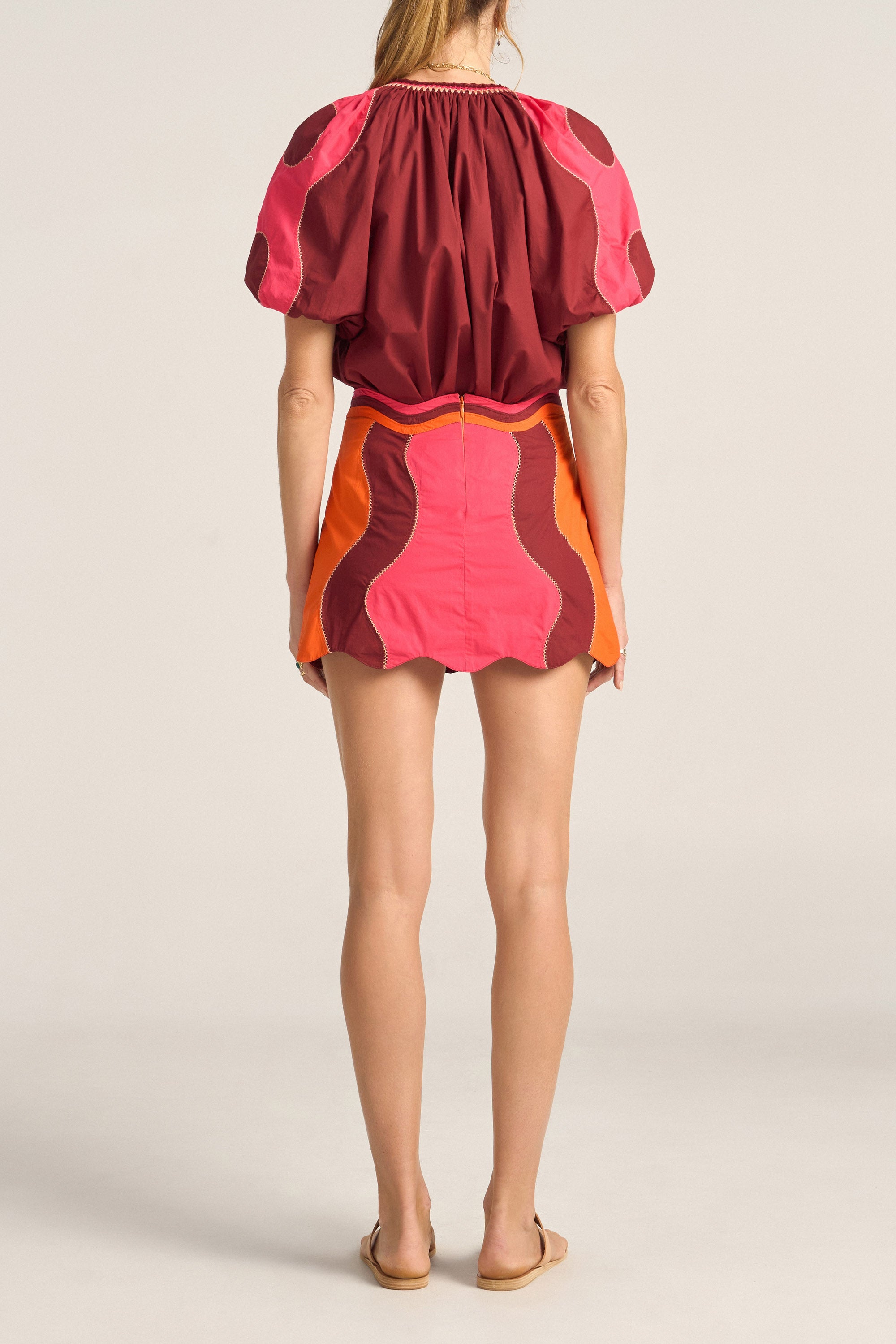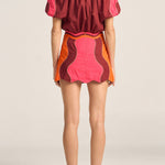 Scilla Red & Pink Wave Patchwork Poplin Skirt