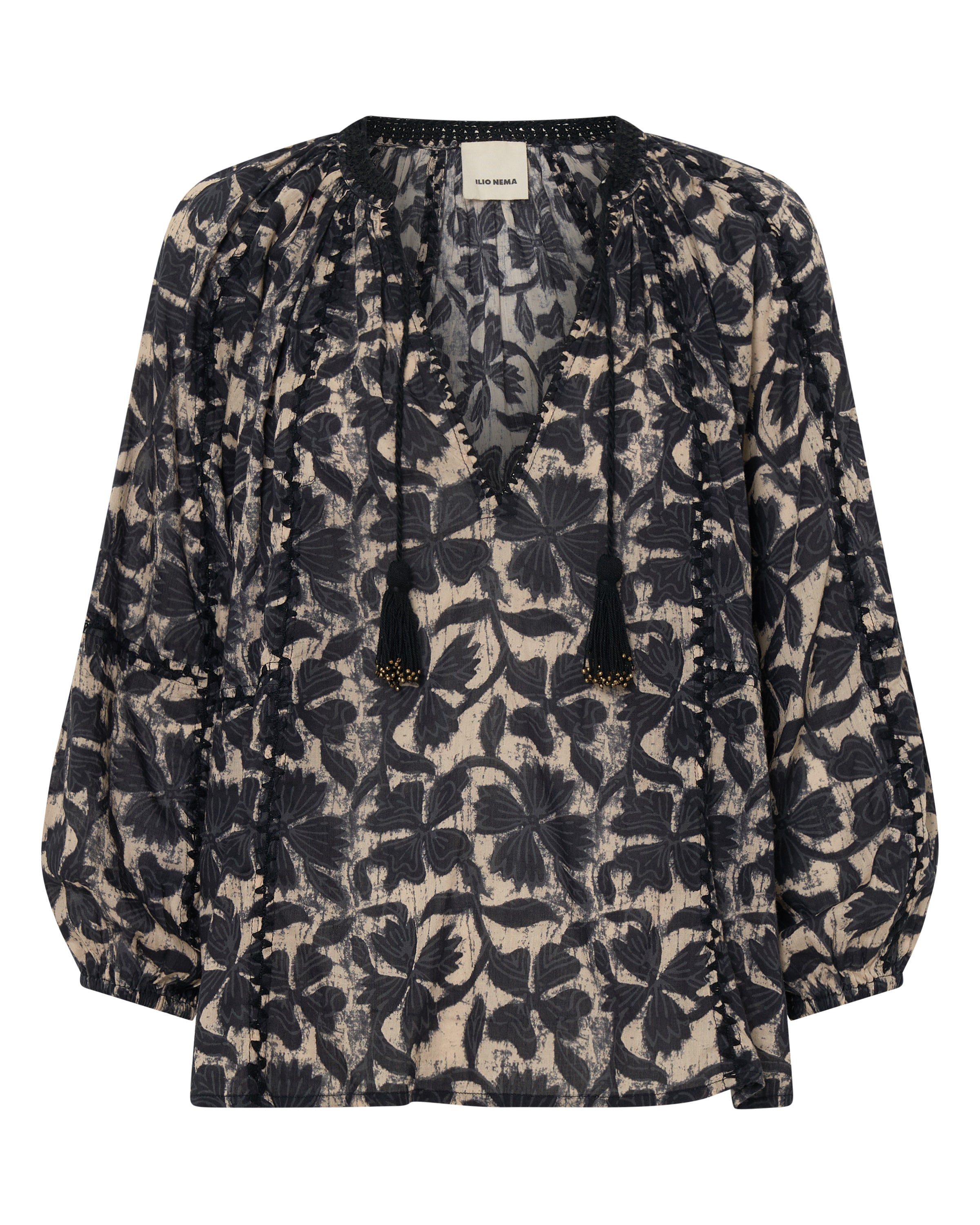The Euthenia Blouse is the quintessential chic bohemian blouse. An easy-to-wear style with its softly gathered neckline finished with a hand-crochet neckband and hand-beaded tassels. Made from the softest organic cotton voile it features elastic cuffs allowing for the generous poet sleeves to be worn up or down, delicate hand stitching details along the princess seams and sleeve tiers.