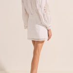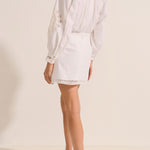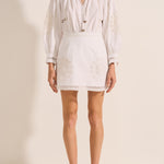 The Pelops White Cotton Poplin Skirt is made from organic cotton poplin, featuring cotton sun appliqué on the front and lace trim along the hem and waistband. With a high-waisted, mini-length silhouette, it’s the perfect playful skirt for hot summer days. Pair it with the Neleus Shirt or Otus Blouse for a refreshing, coordinated look. It also features a centre back zipper and a cotton voile lining for added comfort.